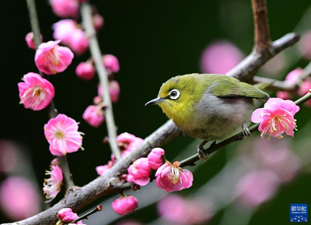 當日是二十四節氣中的立春,花兒開放,生機勃勃,引來小鳥“鬧春戲花”。
