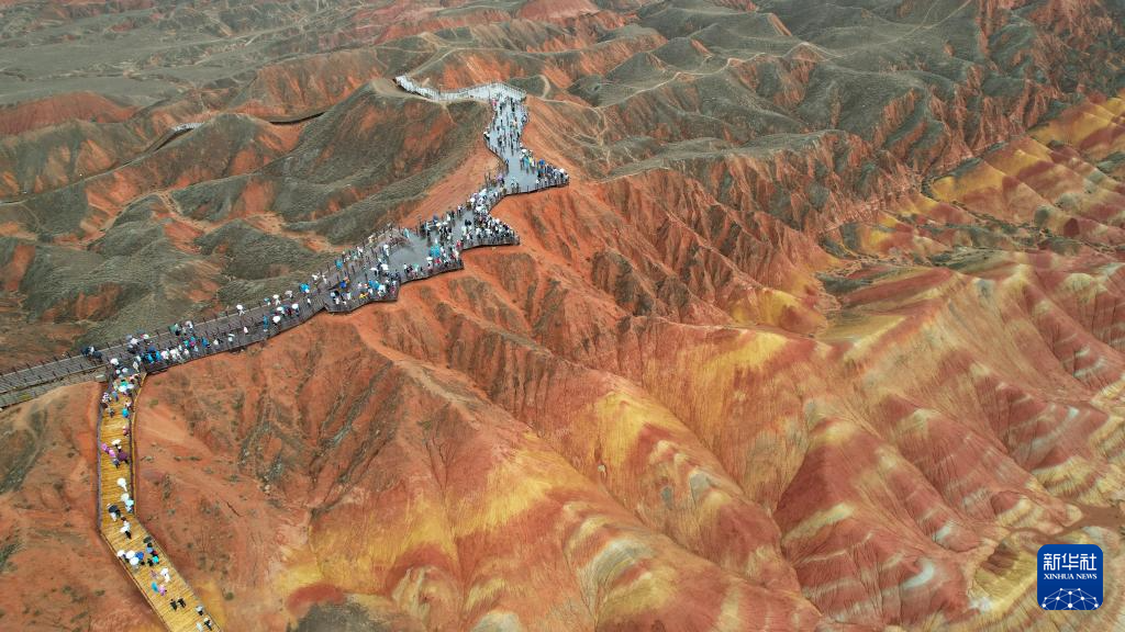 6月22日,甘肅省張掖市七彩丹霞景區迎來一場降雨,丹霞地貌經過雨水的滋潤別具韻味。