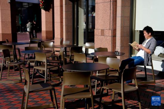11月17日,一名男子在日本東京的一家咖啡店外休憩。新華社記者 賈浩成 攝