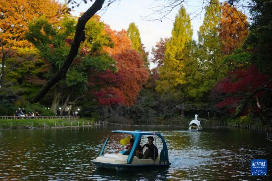 11月16日,游客在日本東京的一處公園內游覽。新華社記者 賈浩成 攝