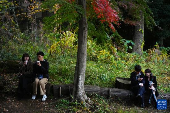 11月16日,游客在日本東京的一處公園內休憩。新華社記者 賈浩成 攝